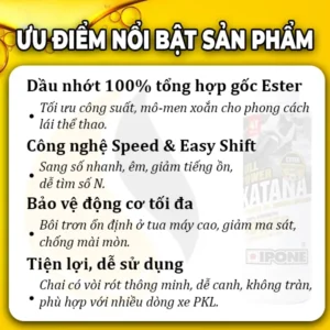 • Ưu điểm: Bảo vệ động cơ tối đa ở tua cao, sang số êm, không trượt côn, giảm nhiệt, giảm mài mòn, tăng tuổi thọ máy.