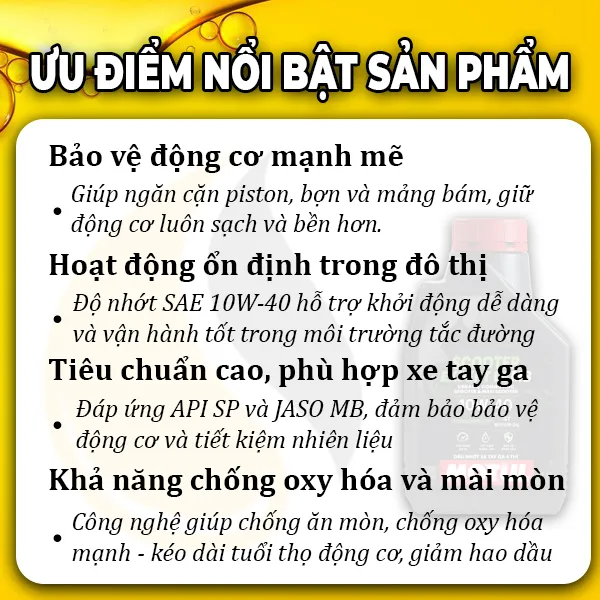 - Tiêu Chuẩn: API SP, JASO MB-2023
